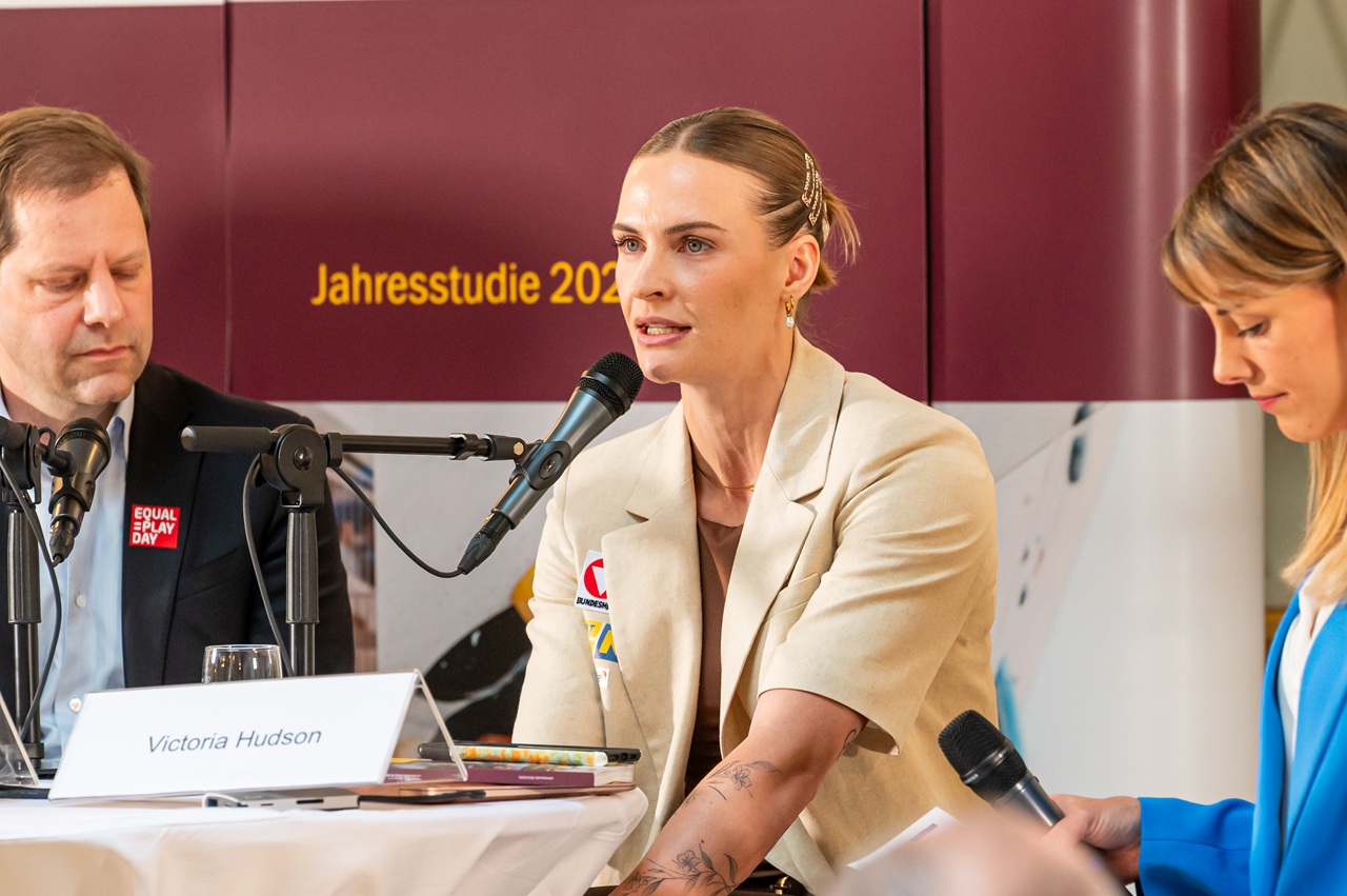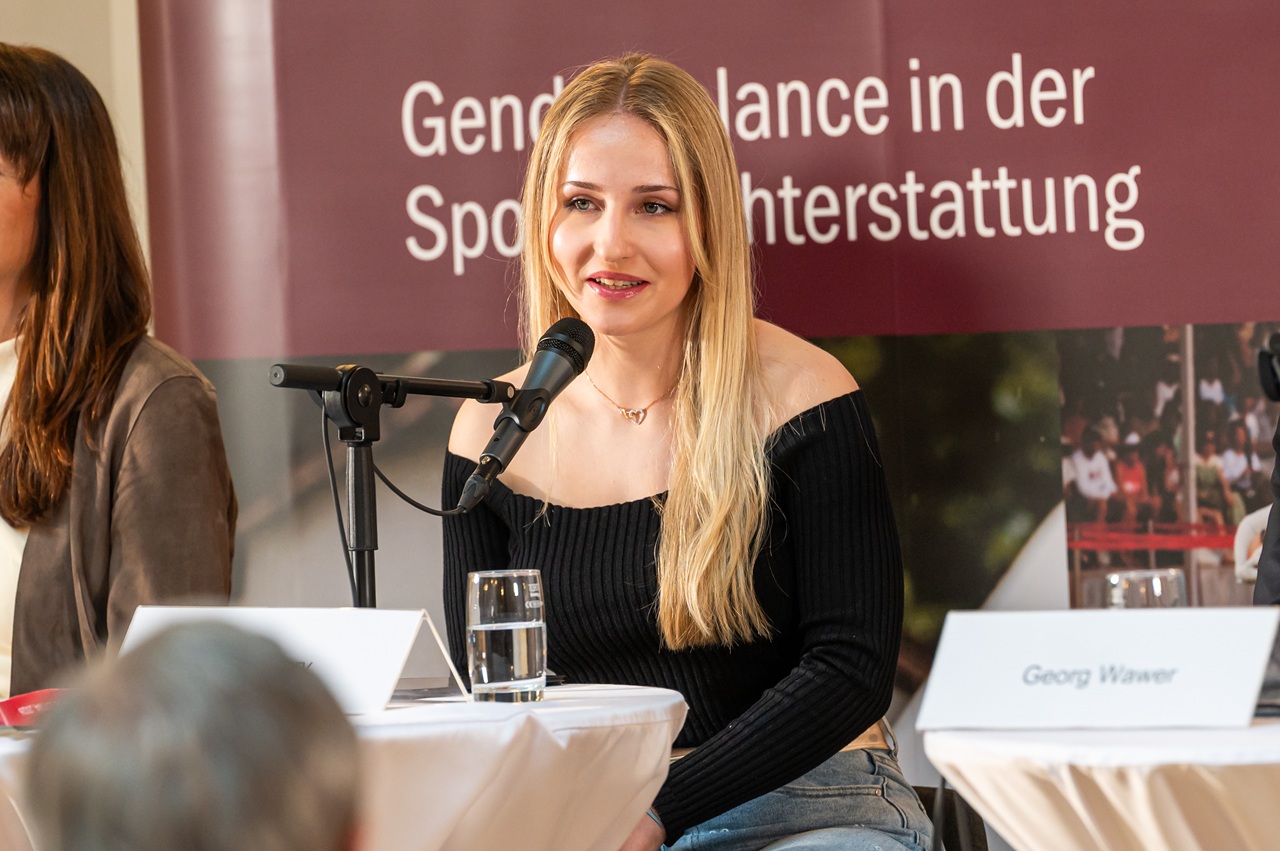 Das Thema Genderbalance begleite auch Speerwerferin Victoria Hudson. Sie schildert in der Paneldiskussion„,dass die Chancengleichheit für Sportlerinnen in den letzten Jahren verstärkt zum Thema gemacht wird.“ Sie appellierte daran, dass sich die Situation möglichst angleiche. In der Leichtathletik erlebe sie Gleichberechtigung: ausgeglichene Starterfelder, gleiches Preisgeld und faire Medienpräsenz. „Seit meinem EM-Titel in Rom ist die Aufmerksamkeit deutlich gestiegen. Ich kann mir nur wünschen, dass das für alle Frauen in allen olympischen und nicht-olympischen Sportarten gilt.“