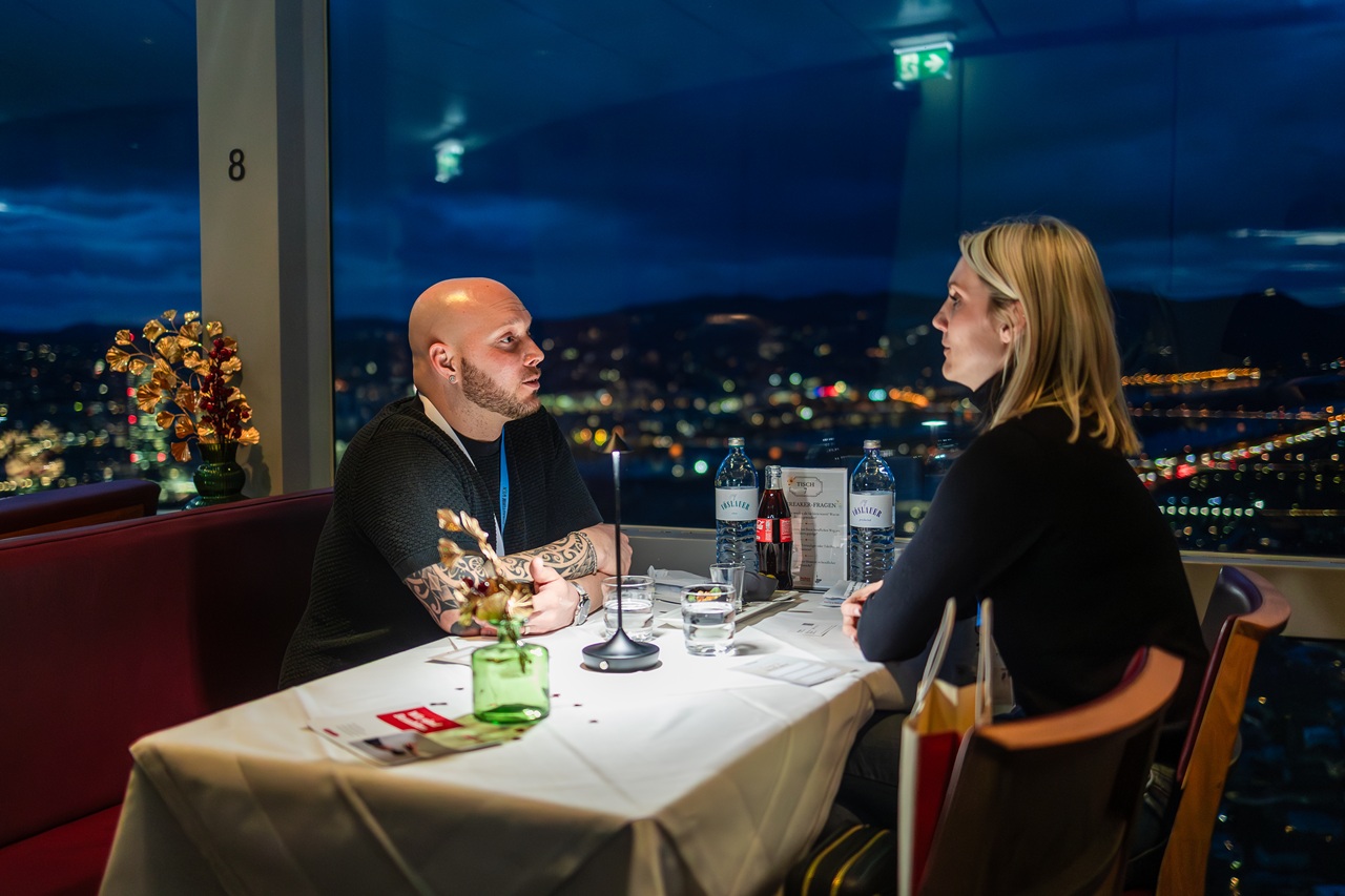 Beim anschließenden Perfect-Match-Dinner, begleitet von Kerzenschein, Prosecco und vielen guten Gesprächen, wurden die neuen Verbindungen weiter vertieft – während auch abseits der Match-Tische fleißig genetzwerkt, gelacht und gerutscht wurde.