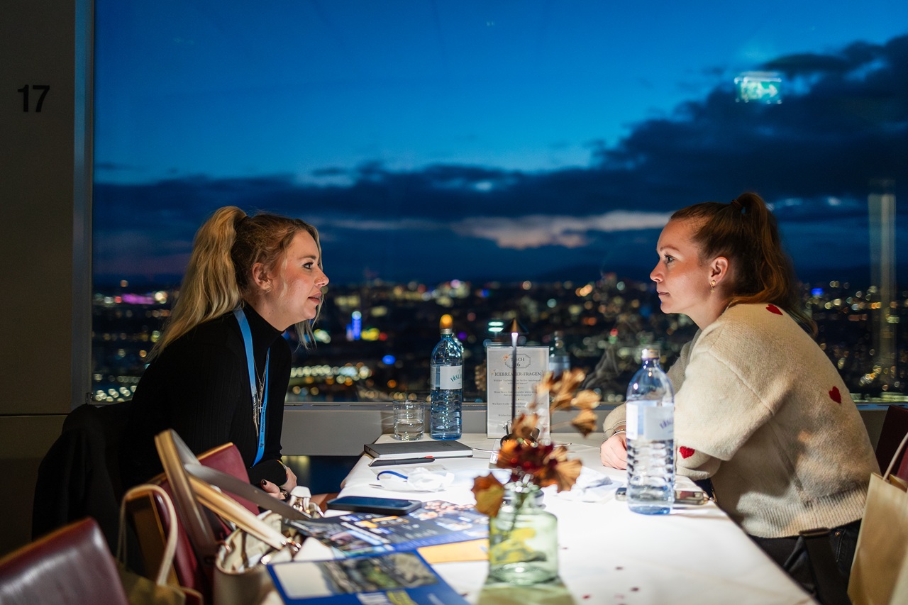 Schon beim Empfang auf der Innenterrasse – mit atemberaubendem Ausblick über Wien – war die besondere Atmosphäre spürbar. In kompakten Speed-Dating-Runden lernten sich über 40 UnternehmerInnen kennen, tauschten Ideen aus und definierten ihre persönlichen Favoriten.