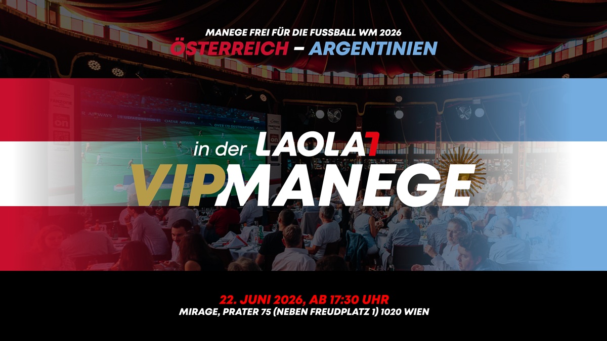 Wenn Österreich bei der FIFA-Weltmeisterschaft 2026 auf Titelverteidiger Argentinien trifft, richtet sich die Aufmerksamkeit der gesamten Fußballwelt auf dieses Duell. LAOLA1 macht das Spiel am 22. Juni 2026 zu einem besonderen Erlebnis: Mit der LAOLA1 VIP-Manege entsteht im Mirage im Wiener Prater ein exklusives Corporate-Viewing-Event, das Fußball, Kulinarik und Business-Networking auf einzigartige Weise verbindet.