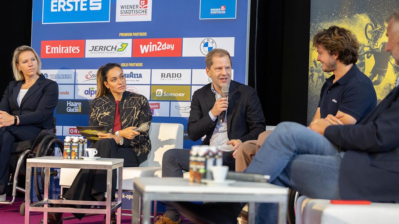In einer hochkarätigen Podiumsdiskussion sprachen darüber Nico Langmann (Rollstuhltennisspieler, Paralympics-Teilnehmer, playing ambassador), Thomas Muster (ehemalige Nr. 1 der Tennis-Weltrangliste), Herwig Straka (CEO & Founder e|motion group, Turnierdirektor Erste Bank Open), Esther Vergeer (ehemalige Nr. 1 der Rollstuhltennisweltrangliste, Gewinnerin Laureus World Sports Awards), Georg Wawer (Managing Director win2day) und Roman Zechmeister (ÖTV-Inklusionsleiter). Moderiert wurde der Event von ServusTV-Moderatorin Andrea Schlager.