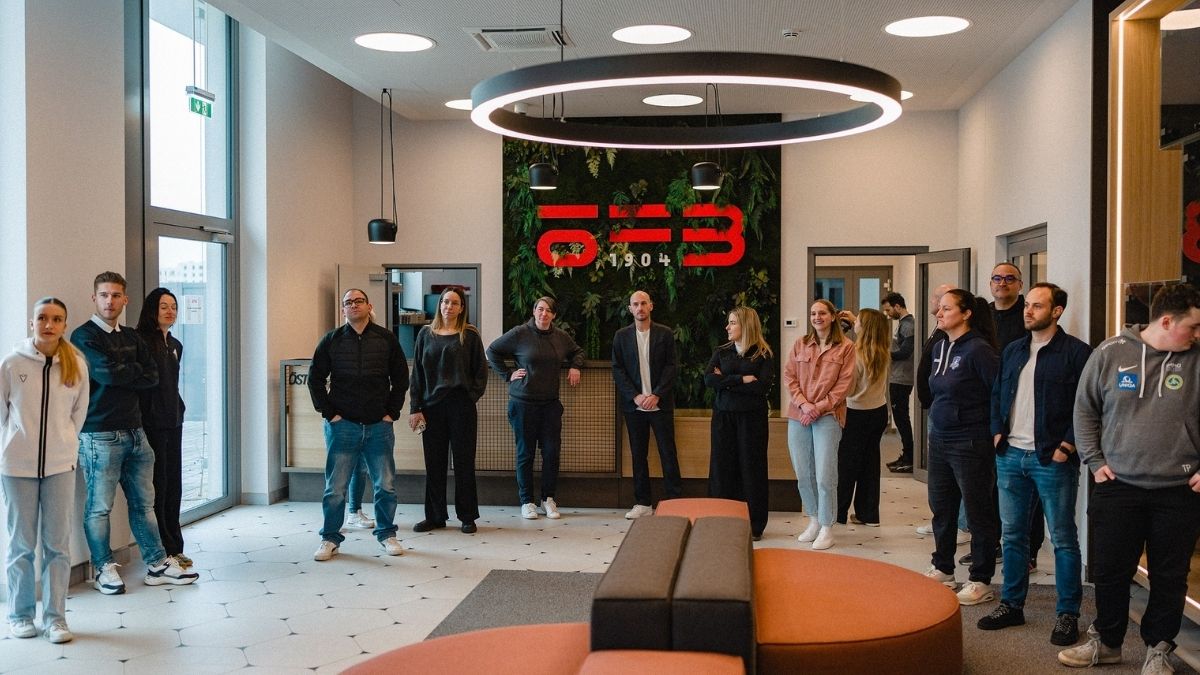Erster Programmhöhepunkt für die Teilnehmer:innen war aber eine rund einstündige Führung durch das neue „Headquarter“ des Fußball-Fachverbandes in Wien-Aspern. Gemeinsam mit ÖFB-Campusmanagerin Julia Stummer warfen die Klub-Vertreter:innen dabei einen Blick hinter die Kulissen, besuchten Büros, Kabinen, Fitnesscenter und Hotelzimmer.