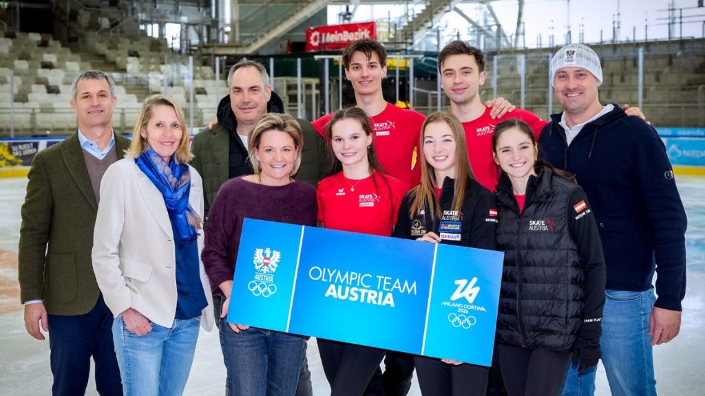 Horst Nussbaumer (ÖOC-Präsident), Interimistische ORF-Sport-Chefin Veronika Dragon-Berger, Interimistischer ORF-Sport-Chef Martin Szerencsi, ORF-Programmdirektorin Stefanie Groiss-Horowitz, Anita Straub, Andreas Straub, Olga Mikutina, Gabriella Izzo, Luc Maierhofer, Florian Gosch (ÖOC-Generalsekretär) | (c) ORF/Roman Zach-Kiesling