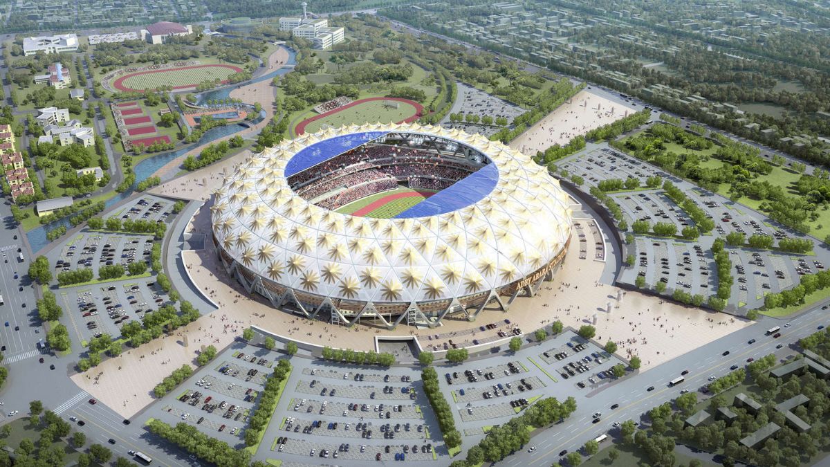 Die Anlage umfasst ein 37 Hektar großes Stadiongelände mit Parkplätzen für 10.000 Autos, eingebettet in ein insgesamt 67 Hektar großes Sport- und Freizeitzentrum. Das Stadion erhält ein kuppelförmiges Dach aus Stahl und Spannmembranen.